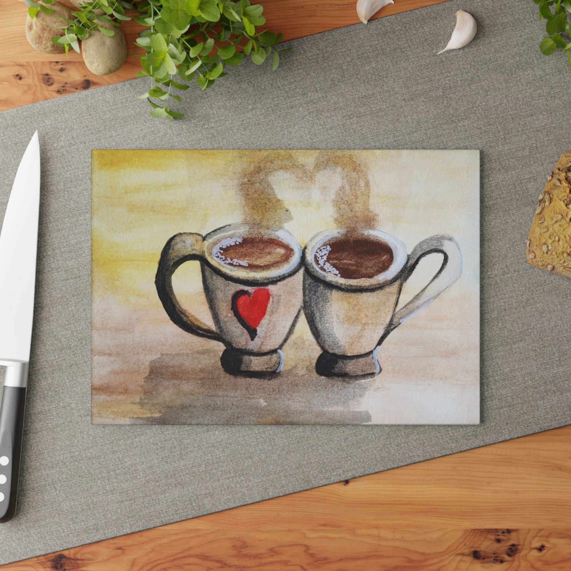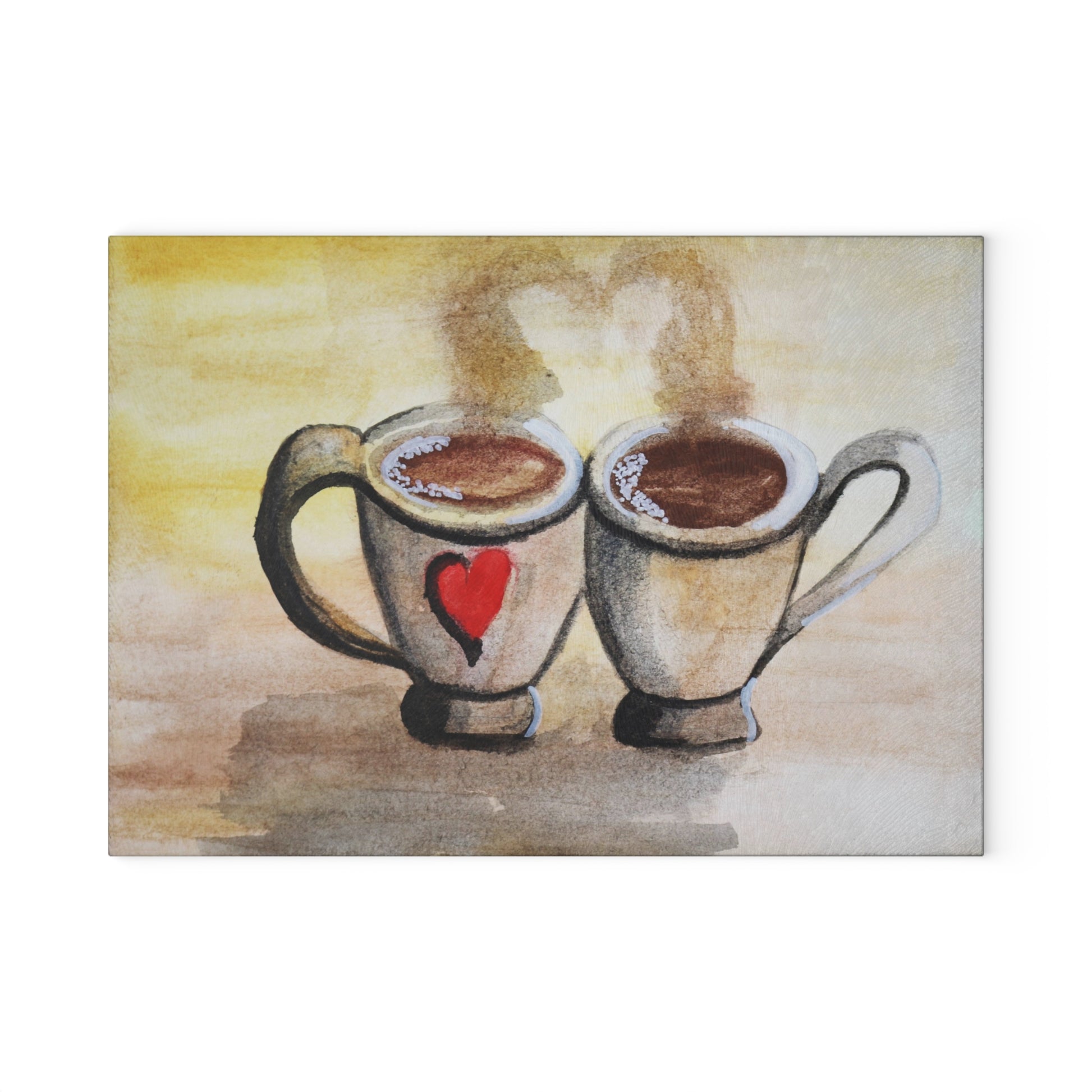 Glass Cutting Board Two Cups, One Heart