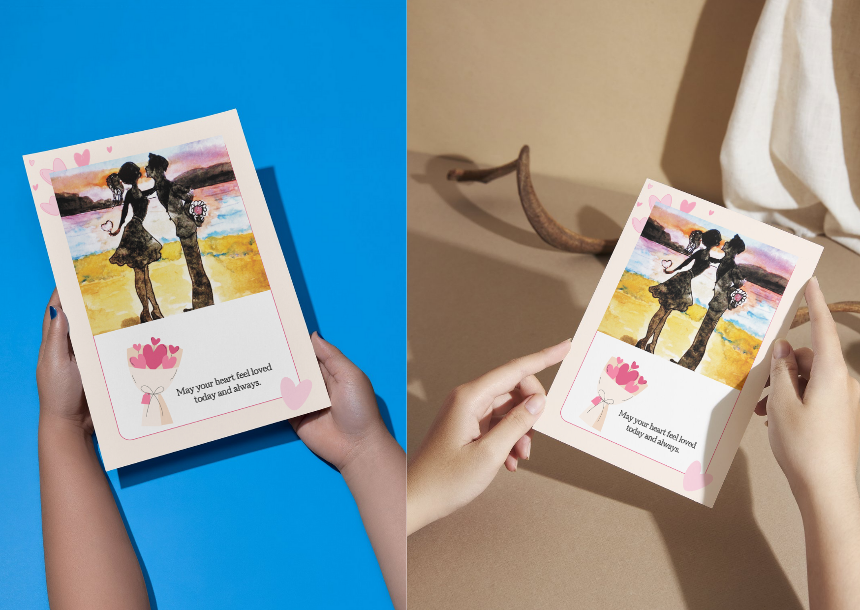 Share your heartfelt message with this stunning Valentine's card featuring a romantic hearts and roses design. Each card showcases original hand-painted artwork that captures the essence of love.